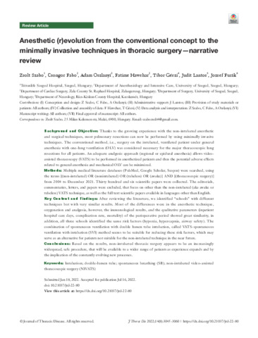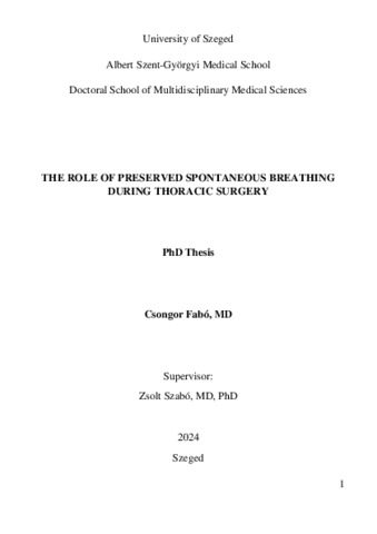 | Magyar cím: | A megtartott spontán légzés szerepe mellkassebészeti beavatkozások során |