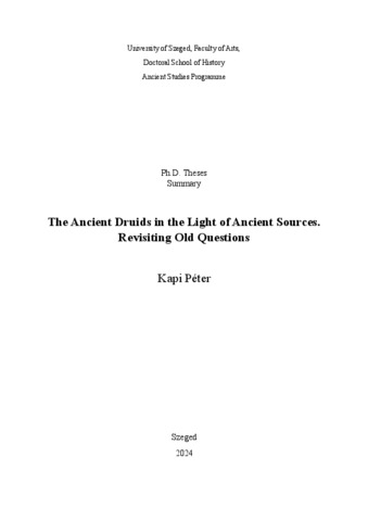 | Idegen nyelvű cím: | The Ancient Druids in the Light of Ancient Sources. Revisiting Old Questions |