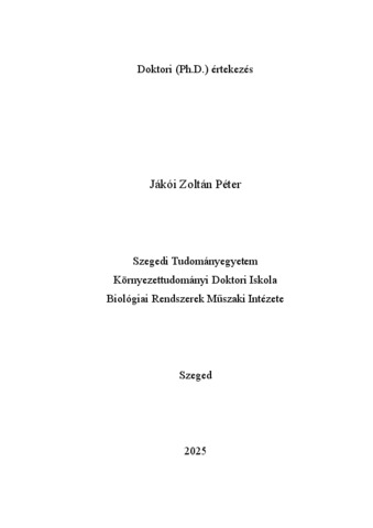 | Doktori iskola: | Környezettudományi Doktori Iskola |