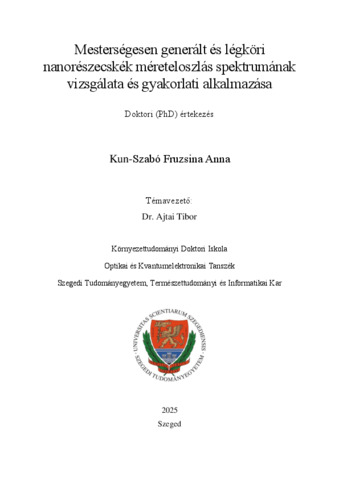 | Idegen nyelvű cím: | Study of the size distribution spectra of artificially generated and atmospheric nanoparticles and practical applications |