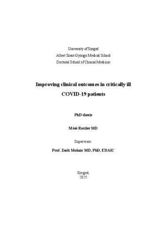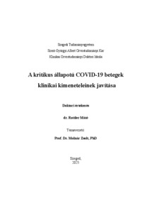 | Magyar cím: | A kritikus állapotú COVID-19 betegek klinikai kimeneteleinek javítása |