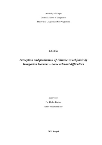 Perception and production of Chinese vowel finals by Hungarian learners – Some relevant difficulties.