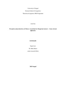 | Magyar cím: | A kínai magánhangzóra végződő rímek észlelése és kiejtése magyar nyelvtanulók által – Néhány releváns nehézség |