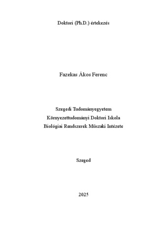 | Doktori iskola: | Környezettudományi Doktori Iskola |