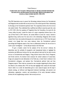 This PhD dissertation aims to present the fluctuating relations between the Czechoslovak and Hungarian state socialist state security services in the earliest period of their relationship by focusing on the Czechoslovak political trials. The cooperation between the two services was indeed volatile. They established their unofficial and official connection quite late, only in 1947–1948. After the expulsion of Yugoslavia from the Cominform, the search for the ‘enemy within the party’ created the chance of a major cooperation between them in the case of Noel Field in 1949. However, the mutual efforts to unveil the ‘enemy’ showed a significant drop, mostly since the main actor in the relationship, Hungarian state security colonel Ernő Szücs was murdered during his own constructed case in 1950. From that point onward, even though there were many instances where the Czechoslovak political proceedings had Hungarian aspects, there was no collaboration between the two services to create a joint ‘investigation’ – as they did previously in the Field-case. To give a broader context for the analysis of the two services’ relations, the dissertation uses the methods of comparative and transnational history to highlight the similarities and differences between the two main political trials and the two state security services in Czechoslovakia and Hungary. Using archival sources from Czech, Hungarian, and Slovak archives, the doctoral work examines the earliest instances of connections, brings new perspectives and information to the Field-case, reveals Szücs’s relations to his Czechoslovak colleagues, and analyses four Czechoslovak political trials and their Hungarian aspects. These trials are examined as case examples supporting the theory about the setback in the relations after 1950, but they also highlight other reasons for this beside Szücs’s death. As a result, the dissertation gives a more nuanced inquiry into the topic’s already existing, yet deficient and fragmented historical knowledge, and presents new information, approaches, contexts, and interrelations of the rarely discussed relations between the two neighbouring countries’ state security services.