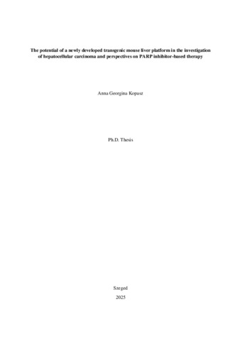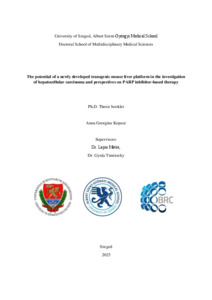 | Magyar cím: | Egy újonnan kifejlesztett transzgenikus egérmáj platform lehetőségei a hepatocelluláris karcinóma vizsgálatában és a PARP-gátlószer alapú terápia perspektívái |