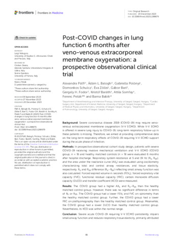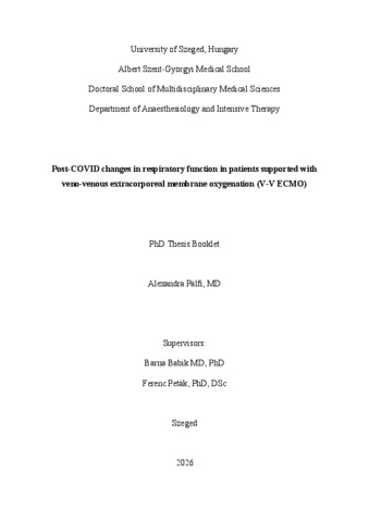 | Magyar cím: | Post-COVID légzésfunkciós vizsgálatok V-V ECMO légzéstámogatásban részesülő betegekben |