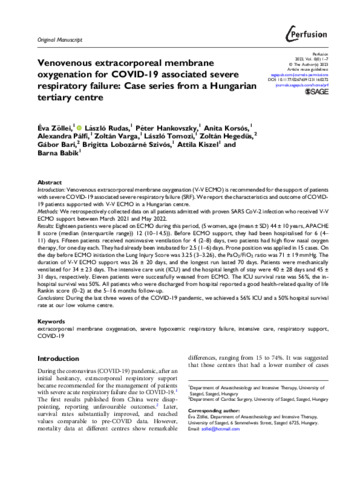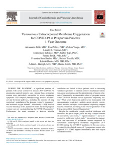 A súlyos COVID-19 fertőzés következtében pneumonia és ARDS (akut respirációs distressz szindróma) alakulhat ki, mely károsítja a gázcserét, ennek eredményeként pedig életveszélyes hypoxemia jön létre. A pneumonia kapcsán elsősorban hypoxemiás légzési elégtelenség alakul ki, amely miatt invazív gépi lélegeztetés is szükséges lehet. A legsúlyosabb esetekben, amikor invazív gépi lélegeztetéssel sem sikerül uralni a gázcserezavart, a V-V ECMO (veno-venosus extracorporalis membránoxigenizáció) támogatás megoldást nyújt az életveszélyes hypoxemia áthidalására. Tercier Központunkban a COVID-19 pneumonia miatti légzési elégtelenség ellátása és V-V ECMO indikáció felállítása, betegeink menedzselése során a EURO ELSO (European Extracorporeal Life Support Organisation) ajánlásait követtük. A V-V ECMO mint egy rescue megoldás, megteremti annak a lehetőségét, hogy a tüdőt nyugalmi paramétereken lélegeztessük, ezáltal mérsékeljük a lélegeztetéssel összefüggő tüdőkárosodást (VILI), de közben az életveszélyes hypoxemiát áthidaljuk és a sejtek oxigénellátását lehetővé tegyük. Azonban az extracorporalis támogatás során komplex immunothrombotikus folyamatok mennek végbe, amellyel összefüggésben az inflammációs kaszkád aktiválódik, és a pro-inflammatoricus cytokinek a légzőrendszeri epithel és endothel további károsodását eredményezik. Ezek végeredménye további gázcserezavar lehet. A COVID-19 pandémia alatt intézetünkben 18 beteg részesült V-V ECMO légzéstámogatásban, 9 beteg élte túl a hospitalizációt. Ezen 9 beteg vizsgálati eredményeit összesítjük, mind a COVID-19 betegség akut fázisában, mind a kiterjesztett longitudinális vizsgálati eredményeket 6 és 12 hónappal a kórházi hazabocsátásukat követően.