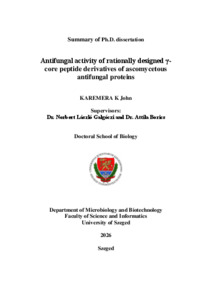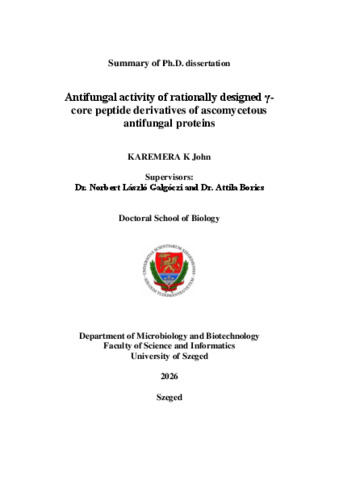 | Kulcsszavak: | antifungal peptide, γ-core motif, peptide-drug interaction, therapeutic efficacy, Candida albicans, Aspergillus fumigatus |