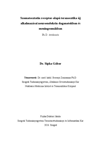 Szomatosztatin receptor-alapú teranosztika új alkalmazásai neuroendokrin daganatokban és meningeomákban.