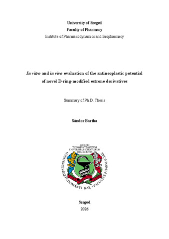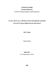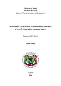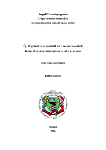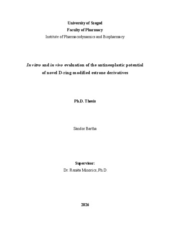 | Magyar cím: | Új, D-gyűrűben módosított ösztron-származékok tumorellenes hatásvizsgálata in vitro és in vivo |