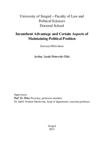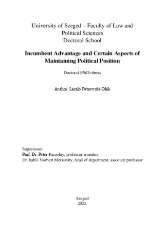 | Idegen nyelvű cím: | Incumbent Advantage and Certain Aspects of Maintaining Political Position |