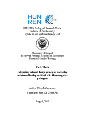 A több sejtfunkciót célzó antibiotikumok várhatóan kevésbé hajlamosak a bakteriális rezisztencia kialakulására. Feltételezésünk szerint a kettős célzás elengedhetetlen, de önmagában nem elegendő a rezisztencia megelőzéséhez. Csak azok az antibiotikumok esetében figyelhető meg csökkent mértékű rezisztencia-kialakulás, amelyek egyszerre célozzák a membrán integritását, és egy másik sejtútvonalat is blokkolnak. A hipotézis teszteléséhez három antibiotikum-jelöltre koncentrálunk: a POL7306-ra, a Tridecaptin M152-P3-ra és a SCH79797-re, amelyek mindegyike megfelel a fenti kritériumoknak. A jelen doktori dolgozat bemutatja, hogy az ESKAPE kórokozók, köztük az Escherichia coli, a Klebsiella pneumoniae, az Acinetobacter baumannii és a Pseudomonas aeruginosa, esetében korlátozott az antibiotikumokkal szembeni rezisztencia kialakulása, míg a kettős célpontú topoizomeráz-antibiotikumok esetében gyakoribb a rezisztencia megjelenése. Számos sejtmechanizmust azonosítottunk, amelyek gátat szabhatnak a rezisztencia kialakulásának. Először is, a de novo mutációk csak korlátozott mértékben növelik a rezisztenciát, beleértve azokat is, amelyek az adott antibiotikum molekuláris célpontját vagy az effluxpumpákat érintik. Másodszor, a rezisztencia génamplifikáció révén nem érhető el. Harmadszor, funkcionális metagenomikai módszerekkel kimutattuk, hogy a mobil rezisztenciagének ritkák az emberi bélben, a talajban és a klinikai mikrobiomokban. Végül, a membráncélzó antibiotikumok magas koncentrációjának való kitettség a baktériumpopulációk gyors kiirtásához vezetett. Összességében ez a munka mechanisztikus betekintést és gyakorlati keretrendszert nyújt a következő generációs antibiotikumok fejlesztéséhez, és ésszerű utat kínál a több gyógyszerrel szemben rezisztens kórokozók elleni fenntarthatóbb terápiák felé.