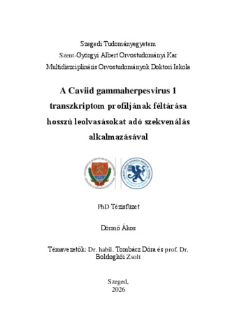 | Magyar cím: | A caviid gammaherpesvirus 1 transzkriptom profiljának feltárása hosszú leolvasásokat adó szekvenálás alkalmazásával |